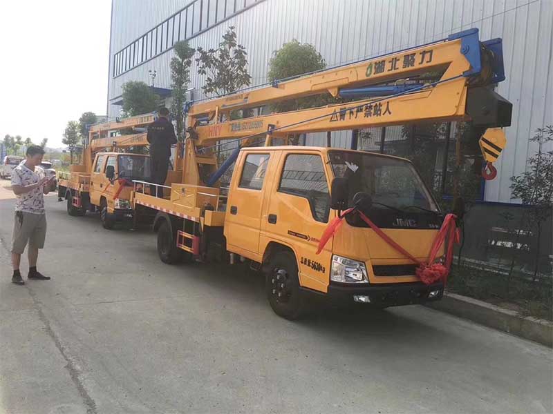 江鈴16米高空作業車配置參數:江鈴順達新款雙排駕駛室,軸距3360mm,配備五十鈴108馬力正宗國五發動機,5檔變速箱,江齒五檔變速箱,7.00R16原廠鋼絲胎.作業高度為14米-16米,液壓360 江鈴16米高空作業車三節折疊臂,折臂系列可選裝1噸吊鉤。單液壓舉升缸,帶雙向平衡閥,電控操作舉升臂,四支液壓油缸可調式支腿帶雙向液壓鎖(支腿操作為手動操作,可單獨**)、**大作業幅度7.2米、**大起吊高度8米。
